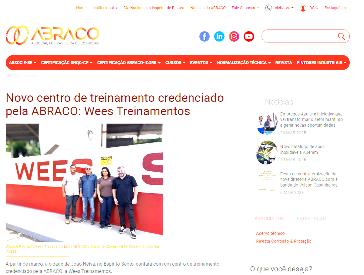 A WEES é a única empresa do Espírito Santo, no segmento de prestação de serviços em acesso por cordas, com processos auditados e certificados pela IRATA (certificação internacional 2036/OT). Isso garante que nossas operações seguem rigorosamente os mais altos padrões globais, com procedimentos seguros, auditáveis e em conformidade com as melhores práticas da indústria.